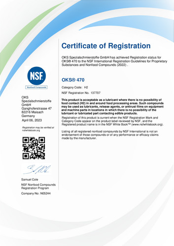 Weißes Allround-Hochleistungsfett OKS 470 weiß NSF H2 400 ml Kartusche E6012102