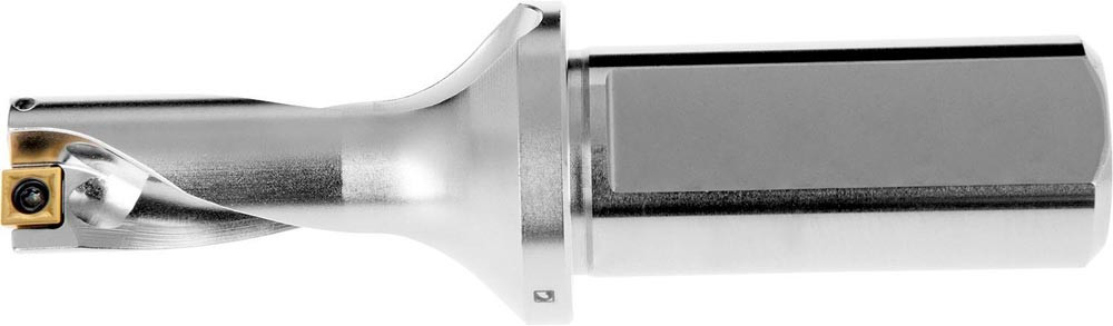Wendeschneidplattenbohrer zum einsetzen von einer XPET 0602.. Wendeschneidplatten als Zentrumschneide und einer SCET 0602.. Wendeschneidplatte als Außenschneide · Bohrdurchmesser 20mm in Kombination mit EP253253 · geeignet für eine radiale Verstellung von -0.10 bis +0.45mm · mit einem 25mm abgeflachten Zylinderschaft nach ISO 9766 und Innenkühlung für maximale Bohrtiefen bis 2 x D