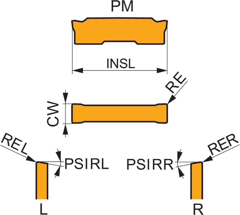 Wendeschneidplatte ISO GL1-D150G015R12-PM:G8330 Schnittbreite 1,5mm PVD beschichtet Farbe Gold