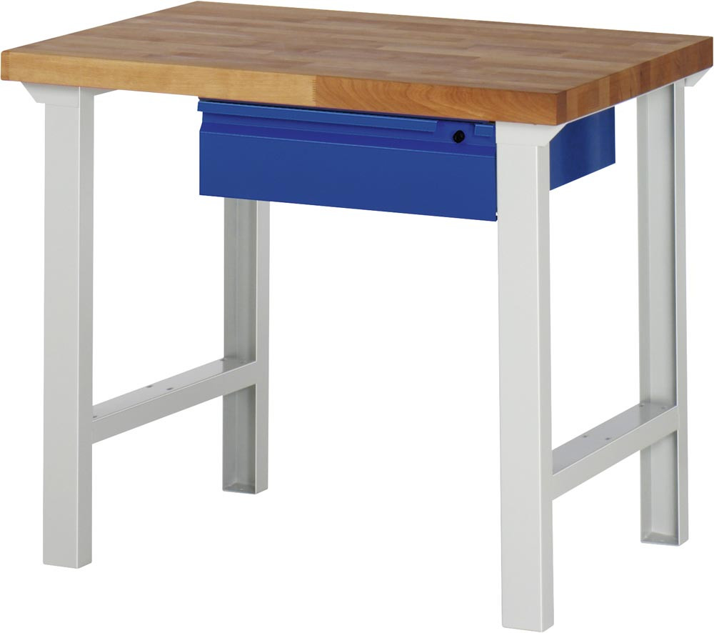 Werkbank, BxTxH 1000x700x840 mm, Platte Buche 40 mm, 1 Hängeschublade 150 mm, RAL 7035/5010