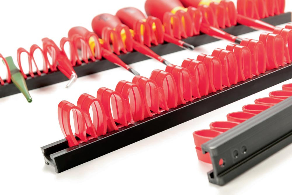 3 Leisten mit je 12 flexiblen Doppelklammern · Länge: einzeln 330 mm, gesamt: ca. 1 m · aus Hart-PVC
