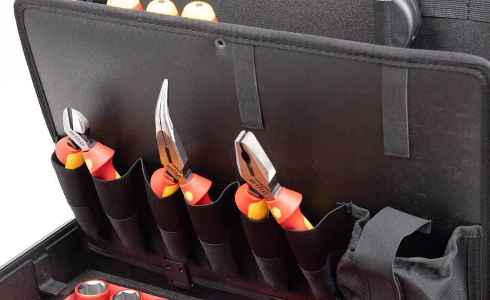 1x Seitenschneider Industrial electric mit DynamicJoint® 160 mm · 6 1/2″ (43336) 1x Kombizange Industrial electric mit DynamicJoint® und OptiGrip mit extra langer Schneide 180 mm · 7″ (33186) 1x Flachrundzange Industrial electric mit Schneide gebogene Form · ca. 40° 200 mm · 8″ (35462) 1x Abisolier-Multitool für Rundkabel 125 mm · 5″ (44242) 1x Schraubendreher SoftFinish® electric slimFix TORX® T27 x 125 mm (36540) 1x Schraubendreher SoftFinish® electric slimFix TORX® T30 x 125 mm (36541) 1x Schraubendreher SoftFinish® electric slimFix TORX® T40 x 150 mm (36542) 1x Ratschenschlüssel isoliert für Steckschlüssel 3/8″ umschaltbar 200 mm (43052) 1x Verlängerung isoliert 3/8″ für Steckschlüsseleinsätze isoliert 125 mm (43057) 1x Vierkant-Adapter isoliert 3/8“ für 1/4″ Steckschlüssel (44355) 1x Schraubendreher mit Bithalter Set SoftFinish® slimVario® electric 4-tlg. mit slimBits auf SB-Karte (43449) 1x Feinschraubendreher Set PicoFinish® slimVario® electric 4-tlg. mit slimBits (43167) 1x Schraubendreher mit Bithalter SoftFinish® electric slimVario Stubby für slimBits 6,0 mm (41229) 1x Verlängerung slimVario® electric für slimBits 6,0 mm x 69,5 mm (43292) 1x Adapter slimVario® electric für 1/4″ Steckschlüssel 59 mm (43139) 1x Drehmoment-Schraubendreher TorqueVario®-S electric variabel einstellbare Drehmomentbegrenzung 0.8 - 5 (26626) 1x Adapter TorqueVario-S electric für 1/4″ Steckschlüssel (43128) 1x Bit slimBit electric Schlitz 2,5 mm x 75 mm (34578) 1x Bit slimBit electric Schlitz mit Zapfen 3,5 mm x 75 mm (44385) 1x Bit slimBit electric Schlitz 4,0 mm x 75 mm (34580) 1x Bit slimBit electric Schlitz 5,5 mm x 75 mm (34581) 1x Bit slimBit electric Phillips PH1 x 75 mm (34583) 1x Bit slimBit electric Phillips PH2 x 75 mm (34584) 1x Bit slimBit electric Pozidriv PZ1 x 75 mm (34585) 1x Bit slimBit electric Pozidriv PZ2 x 75 mm (34586) 1x Bit slimBit electric PlusMinus/Pozidriv SL/PZ1 x 75 mm (34589) 1x Bit slimBit electric PlusMinus/Pozidriv SL/PZ2 x 75 mm (34590) 1x Bit slimBit electric TORX® T8 x 75 mm (35506) 1x Bit slimBit electric TORX® T10 x 75 mm (35507) 1x Bit slimBit electric TORX® T15 x 75 mm (35508) 1x Bit slimBit electric TORX® T20 x 75 mm (35509) 1x Bit slimBit electric TORX® T25 x 75 mm (36071) 1x Bit slimBit electric Sechskant 2,5 mm x 75 mm (37224) 1x Bit slimBit electric Sechskant 3,0 mm x 75 mm (37147) 1x Bit slimBit electric Sechskant 4,0 mm x 75 mm (37225) 1x Bit slimBit electric Sechskant 5,0 mm x 75 mm (37226) 1x Bit slimBit electric Sechskant 6,0 mm x 75 mm (37227) 1x Steckschlüsseleinsatz isoliert 1/4″ Außensechskant 4,0 mm x 42 mm (43088) 1x Steckschlüsseleinsatz isoliert 1/4″ Außensechskant 5,0 mm x 42 mm (43089) 1x Steckschlüsseleinsatz isoliert 1/4″ Außensechskant 5,5 mm x 42 mm (10102) 1x Steckschlüsseleinsatz isoliert 1/4″ Außensechskant 6,0 mm x 42 mm (43091) 1x Steckschlüsseleinsatz isoliert 1/4″ Außensechskant 7,0 mm x 42 mm (10103) 1x Steckschlüsseleinsatz isoliert 1/4″ Außensechskant 8,0 mm x 42 mm (43093) 1x Steckschlüsseleinsatz isoliert 1/4″ Außensechskant 9,0 mm x 42 mm (10104) 1x Steckschlüsseleinsatz isoliert 1/4″ Außensechskant 10,0 mm x 42 mm (43095) 1x Steckschlüsseleinsatz isoliert 1/4″ Außensechskant 11,0 mm x 42 mm (43096) 1x Steckschlüsseleinsatz isoliert 1/4″ Außensechskant 12,0 mm x 42 mm (10105) 1x Steckschlüsseleinsatz isoliert 1/4″ Außensechskant 13,0 mm x 42 mm (43098) 1x Steckschlüsseleinsatz isoliert 1/4″ Außensechskant 14,0 mm x 42 mm (43099) 1x Steckschlüsseleinsatz isoliert 3/8″ Außensechskant 16,0 mm x 45 mm (43071) 1x Steckschlüsseleinsatz isoliert 3/8″ Außensechskant 17,0 mm x 45 mm (43072) 1x Steckschlüsseleinsatz isoliert 3/8″ Außensechskant 18,0 mm x 45 mm (43073) 1x Steckschlüsseleinsatz isoliert 3/8″ Außensechskant 19,0 mm x 47 mm (43074) 1x Steckschlüsseleinsatz isoliert 3/8″ Außensechskant 21,0 mm x 47 mm (43075) 1x Steckschlüsseleinsatz isoliert 3/8″ Außensechskant 22,0 mm x 47 mm (43076) 1x Steckschlüsseleinsatz isoliert 1/4″ Innensechskant 4,0 mm x 65 mm (43110) 1x Steckschlüsseleinsatz isoliert 1/4″ Innensechskant 5,0 mm x 65 mm (43111) 1x Steckschlüsseleinsatz isoliert 1/4″ Innensechskant 6,0 mm x 65 mm (43112) 1x Steckschlüsseleinsatz isoliert 1/4″ Innensechskant 8,0 mm x 65 mm (43113) 1x Koffer