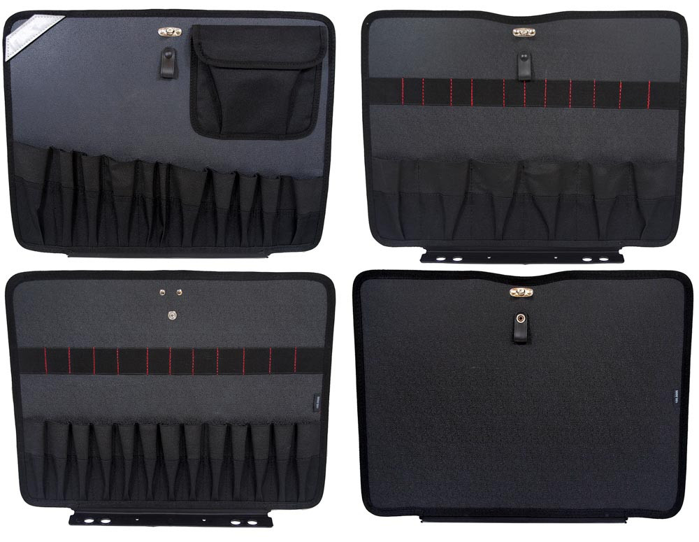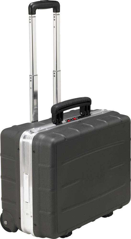Ausführung: Kofferschalen aus Polypropylen, schwarz ∙ Schlagunempflindlich bei hohen Temperaturschwankungen ∙ Umlaufender Aluminium-Rahmen ∙ Herausnehmbare Werkzeugtafeln ∙ Werkzeugtafel beidseitig bestückbar mit 24 Einsteckfächern und 12 Gummilaschen, großer Tasche ∙ Werkzeugtafel einseitig bestückbar im Bodenfach mit 6 Einsteckfächern und 9 Gummilaschen ∙ Bodenschale einteilbar mit 3 Trennstegen mit Abdeckplatte ∙ Mit leichtgängigen Rollen und Teleskopgriff