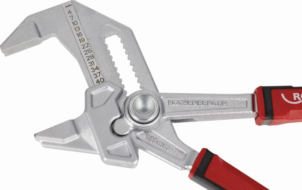 der Zangenschlüssel ist vielseitig nutzbar ob zum Greifen, Halten, Biegen oder als Maulschlüssel-Satz von oberflächenempfindlichen, verchromten Verschraubungen · Plangeformte Backen für schonendes Öffnen oder Anziehen von hochwertigen Schraubverbindungen · Greifkapazität um + 20% erhöht durch Curve-Shape-Design sowie Knopf für Größen-Schnellverstellung · immer sicheren und festen Halt mit dem 2K-Handgriff