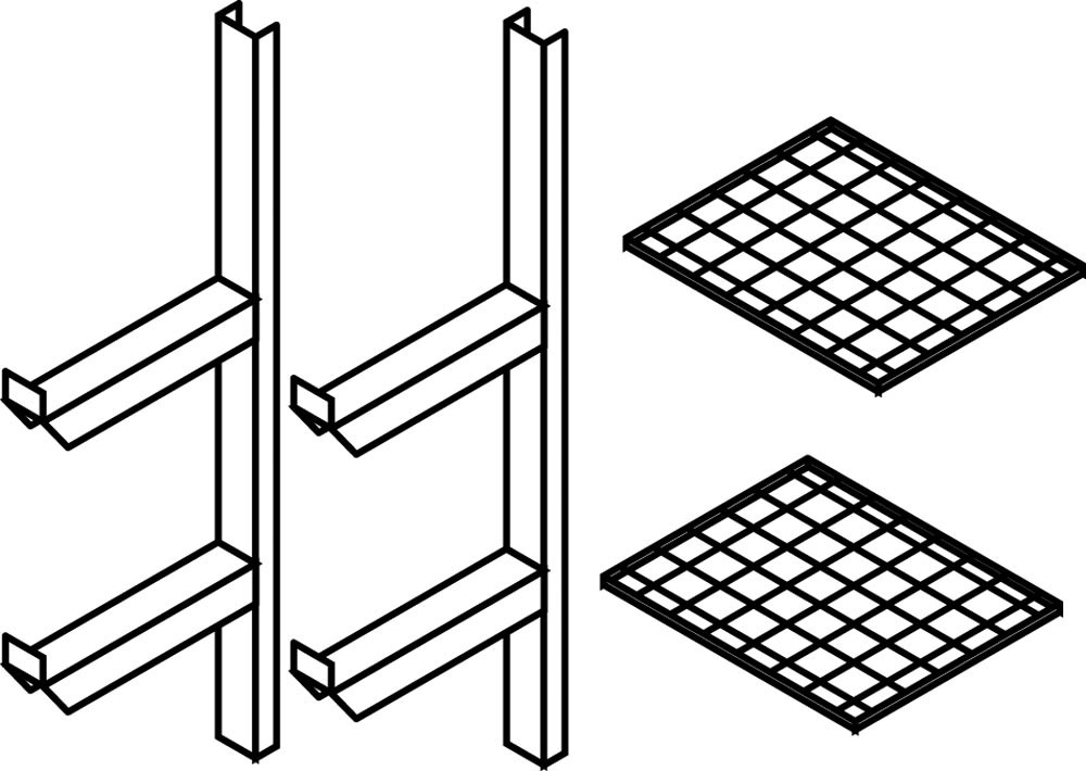 Zubehör zu SafeMaster, Fass-Gitterrostregal komplett, 2 Ebenen mit Gitterrostboden über die ganze Breite, BxT 1200x500 mm E810258