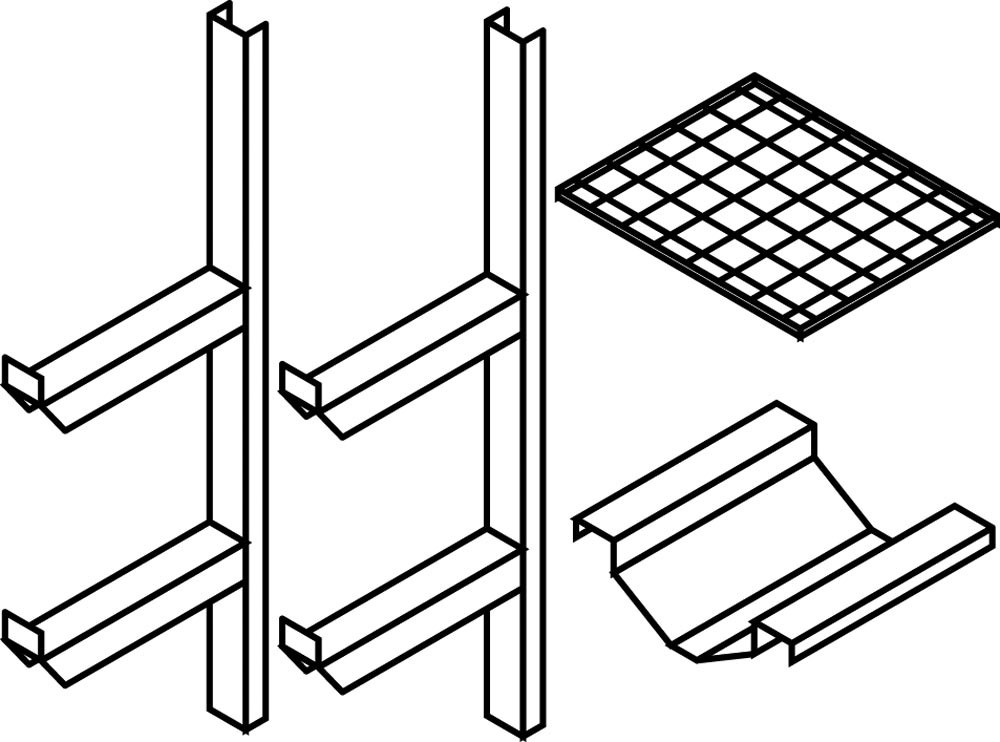 Zubehör zu SafeMaster, Fass-Gitterrostregal komplett, 2 Ebenen mit Gitterrostboden über die halbe Breite, BxT 600x500 mm E810257