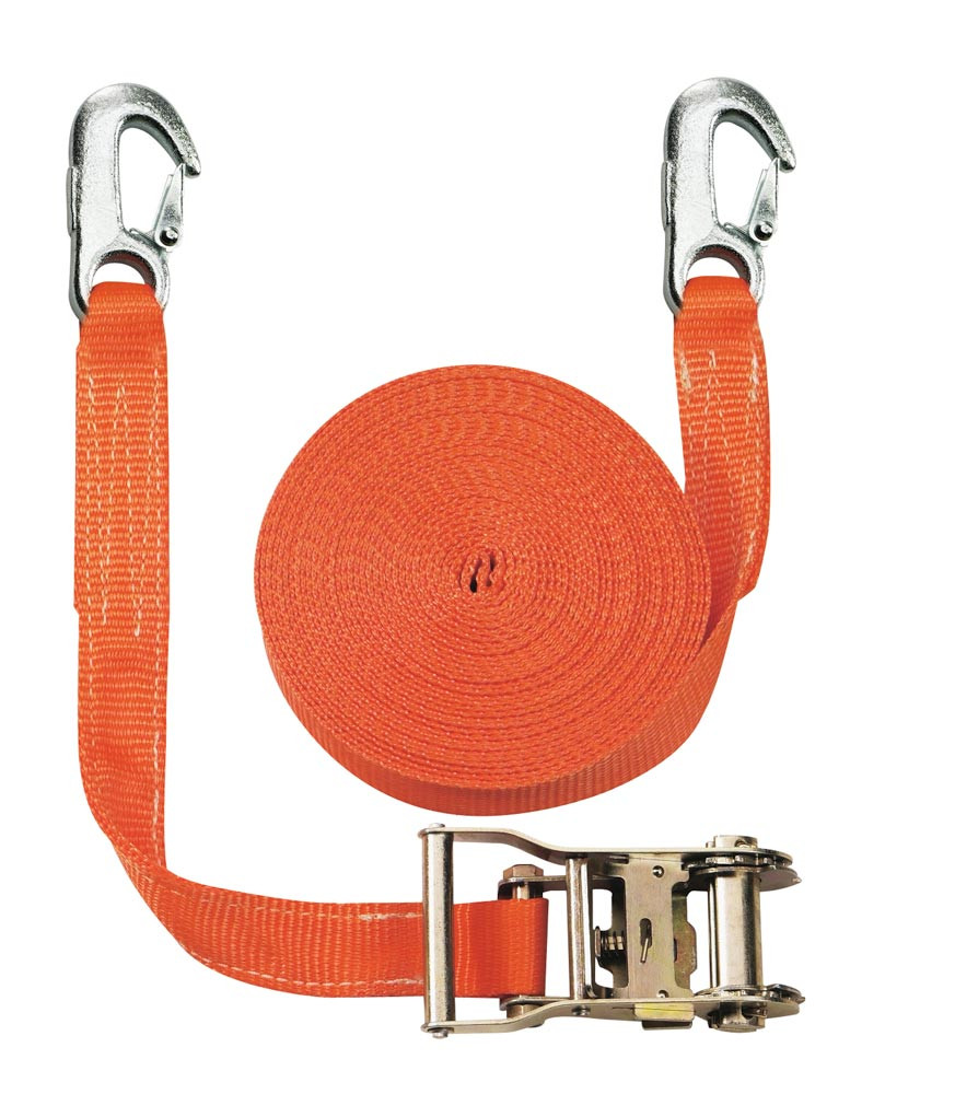 Zweiteiliger Zurrgurt, mit Karabinerhaken, 2000 daN zul. Zugkraft in der Umr., Gurtbr. 35 mm, Länge 4 m, Farbe orange, 2 Streifen, VE 2 Stück