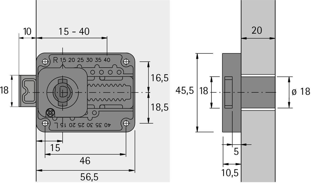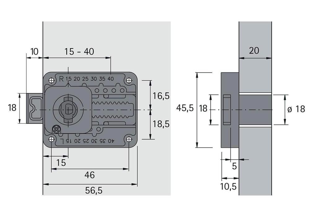 Zylinderkastenschloss variabel Prestige 2000 15 mm Z23, 18 mm Dornmaß 15 mm